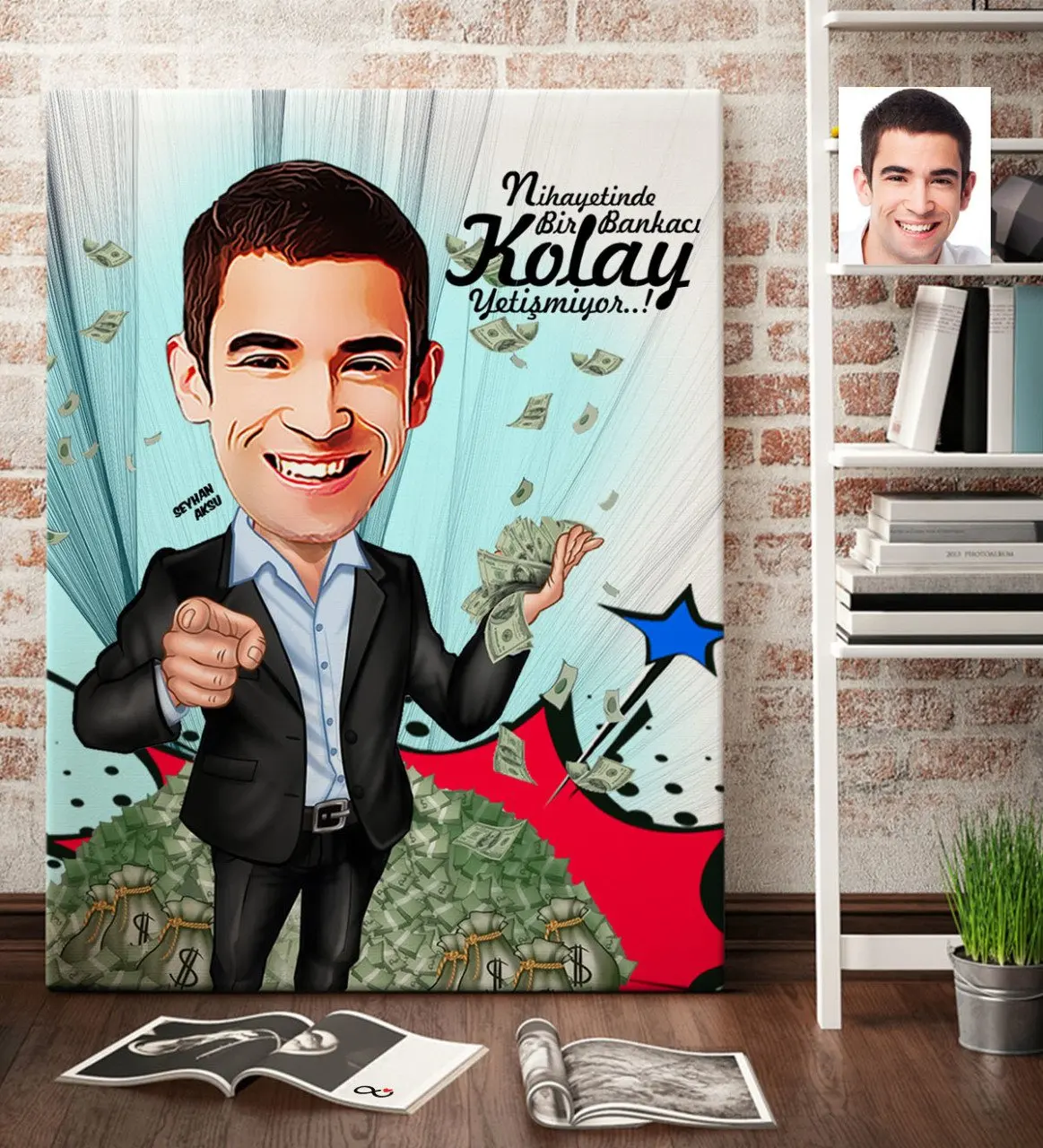 BEST Personalized Mr Banker Cartoon Canvas Table (70x100 cm.) 2