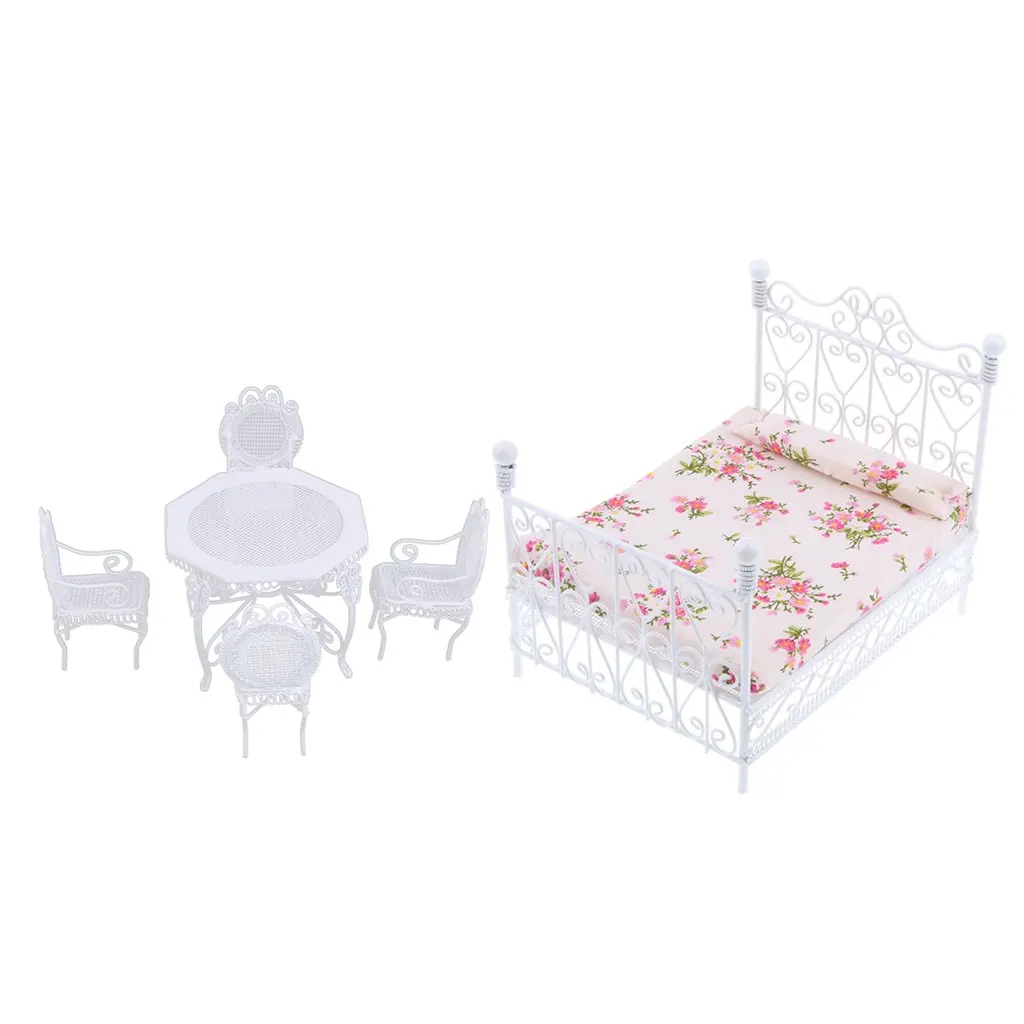 5pcs 1:12 Scale Dollhouse Furniture Miniature Table Chair Bed Doll House Accessories Toys Birthday