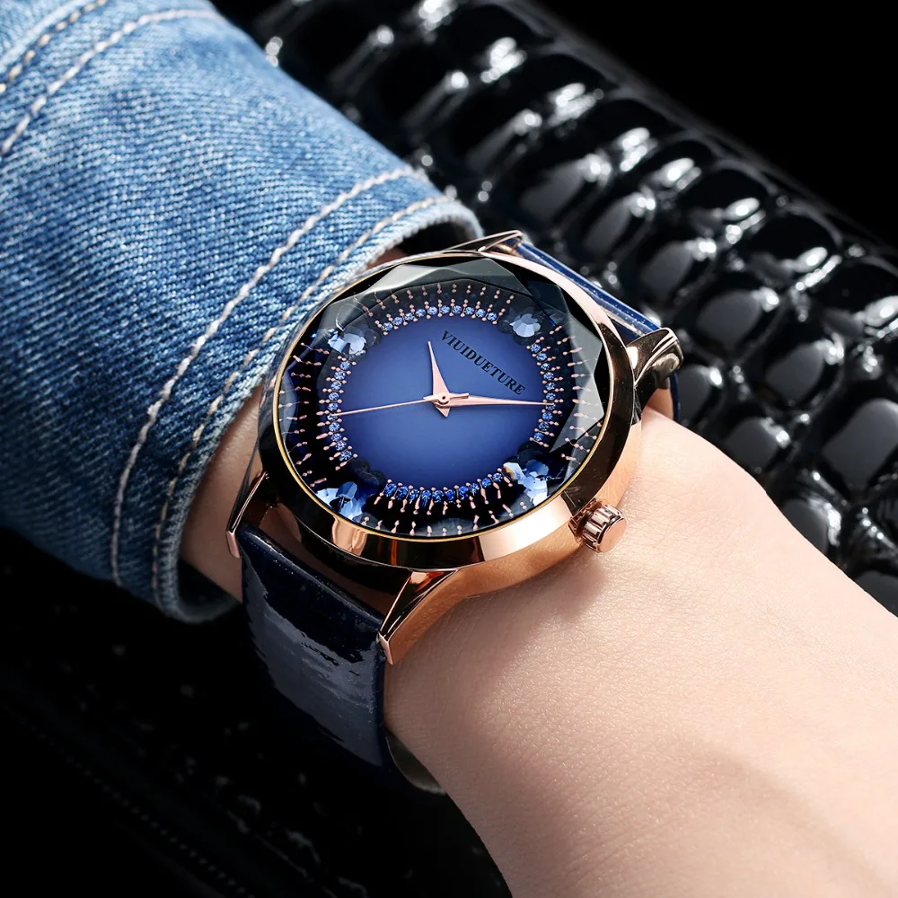 2019 new genuine watch female fashion trend big dial ladies watch waterproof quartz watch belt stud