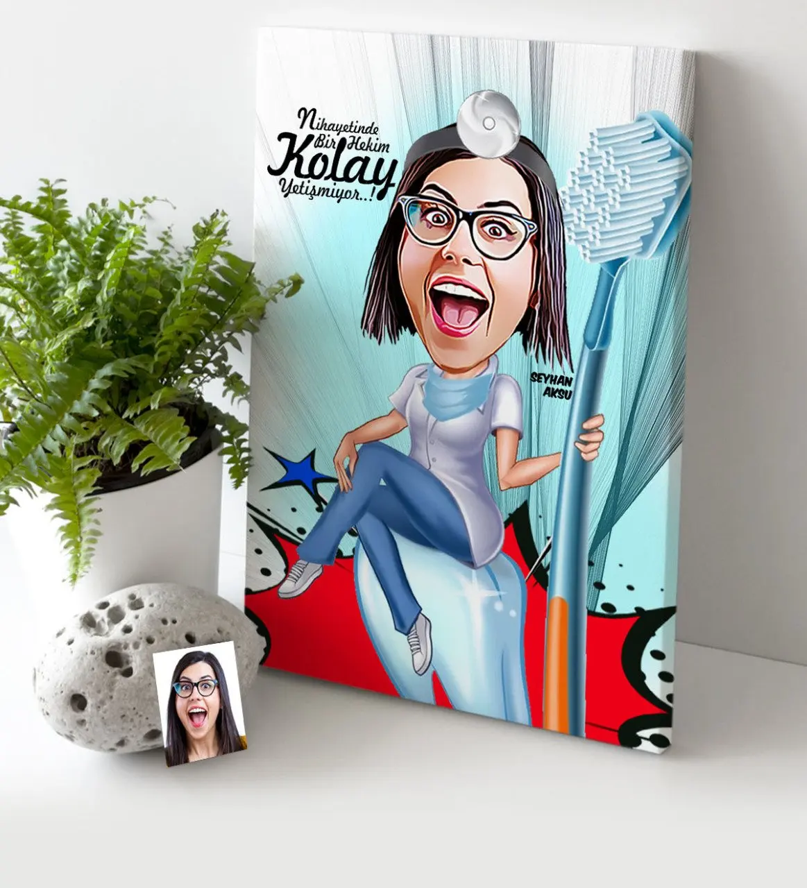 Personalized Women 'S Dentist Cartoon Canvas Table (30x50 cm.) 3
