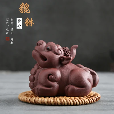 BEST QUALITY Yixing Purple Clay Tea Pet Lucky PIqiu Handmade Ornaments Kung Fu Tea Ceremony Accessories Tea Tabl