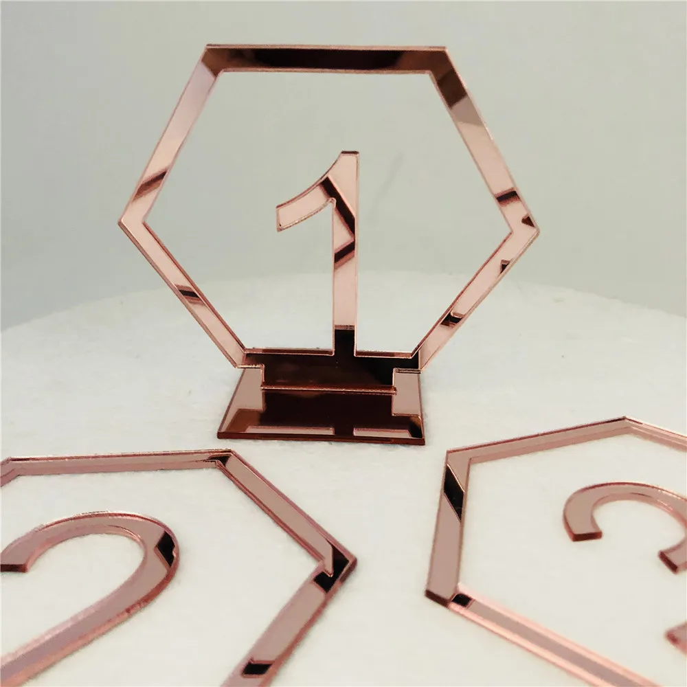 Hexagon Table Number Sign Wedding Acrylic Rose Mirror Gold Wedding Table Number Gold Wedding Birthd