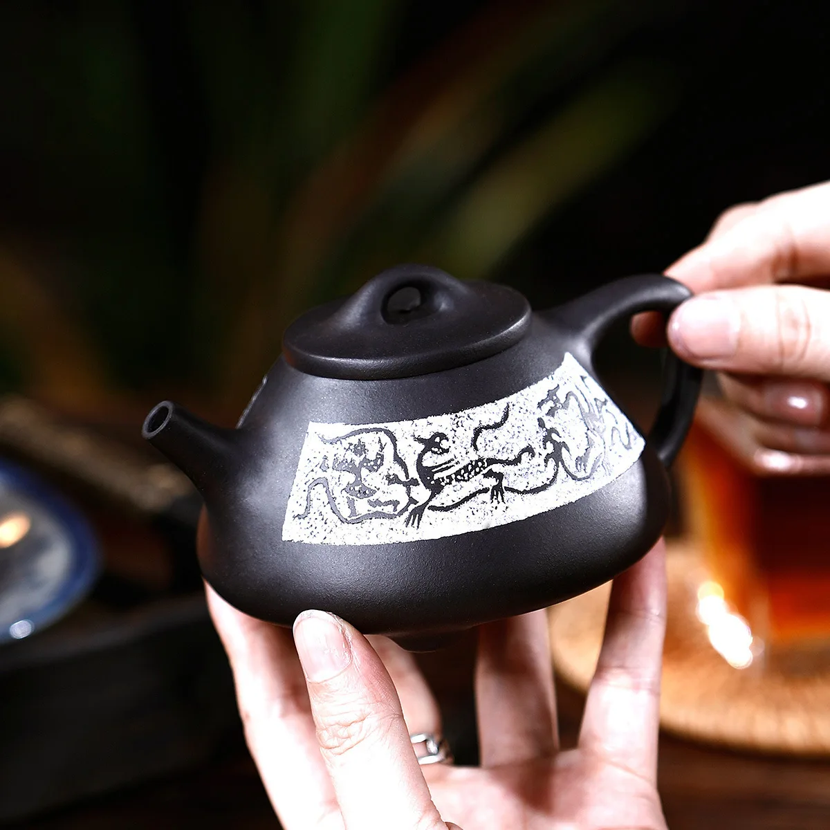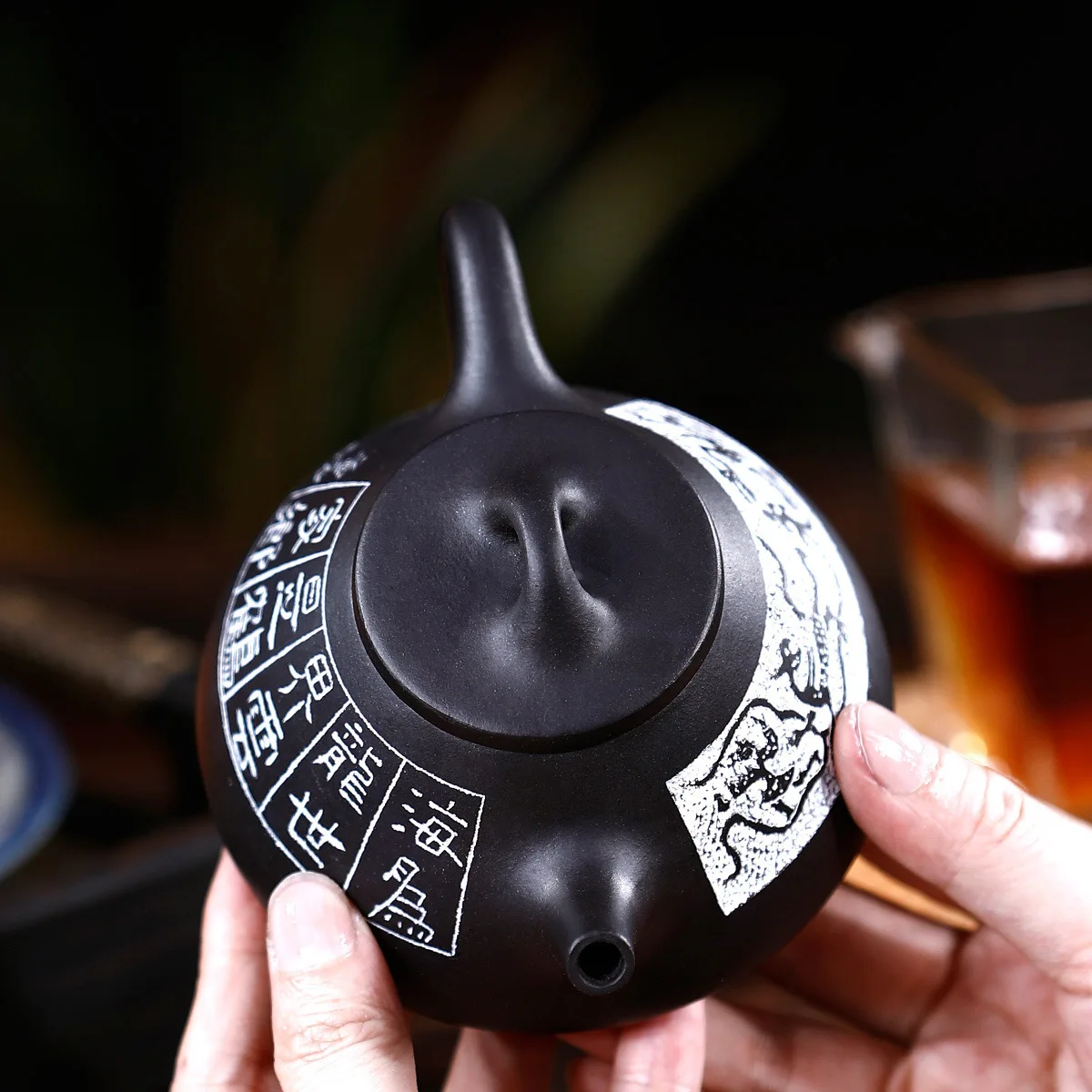 HOT Sale Yixing Dark-red Enameled Pottery Teapot Famous Manual Raw Ore Black Mud You Stone Pot Kungfu Online