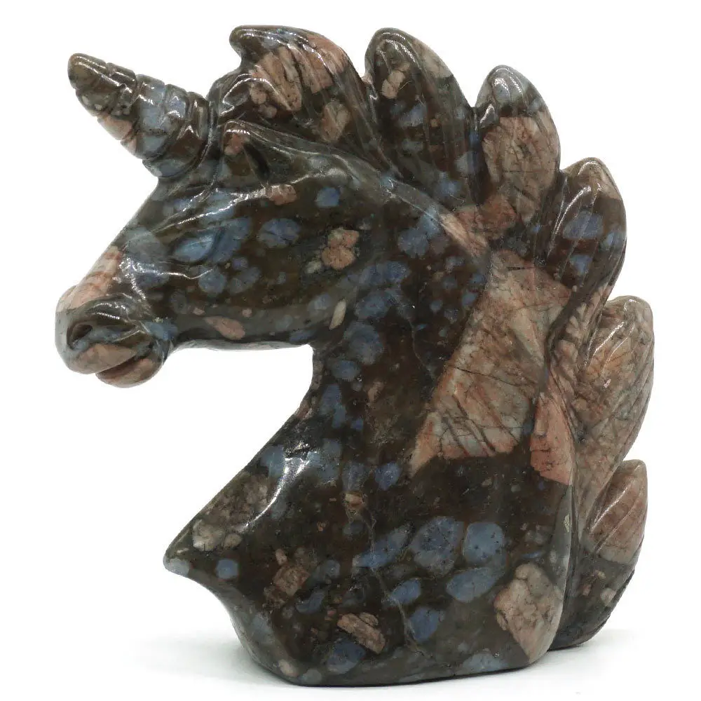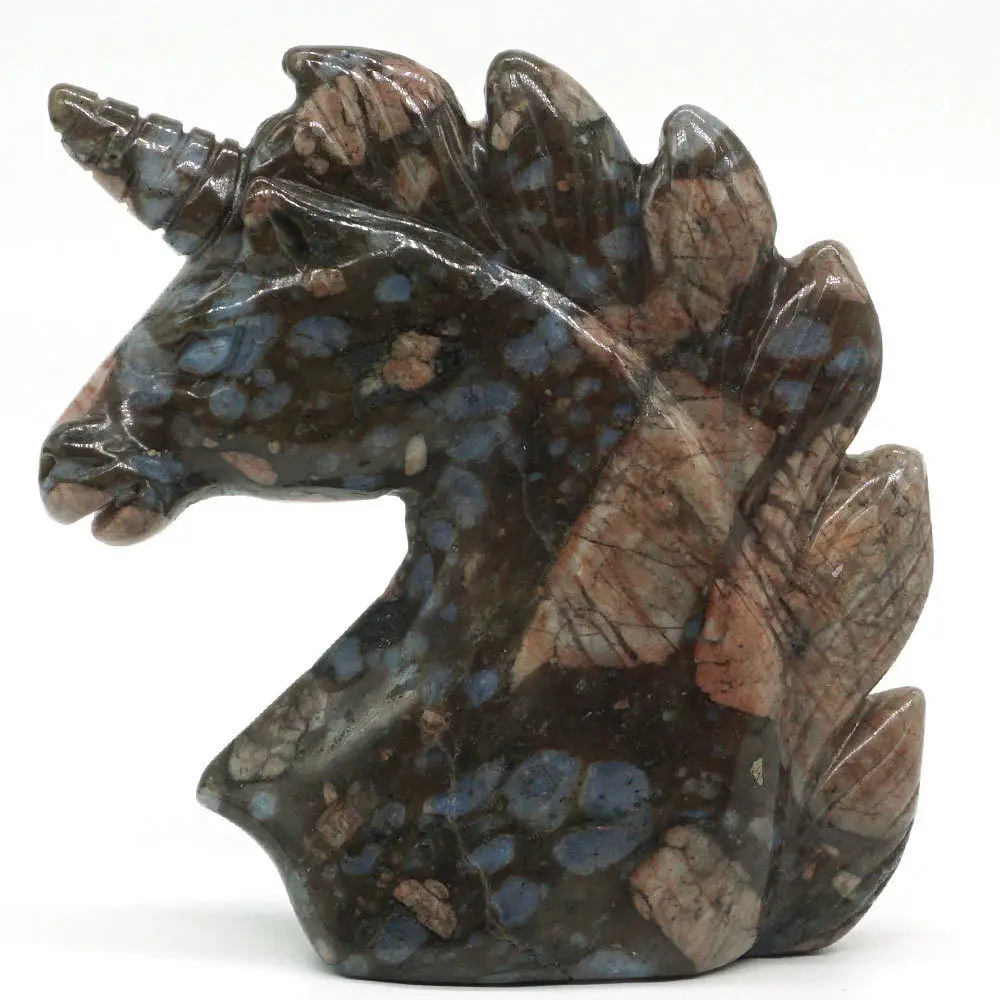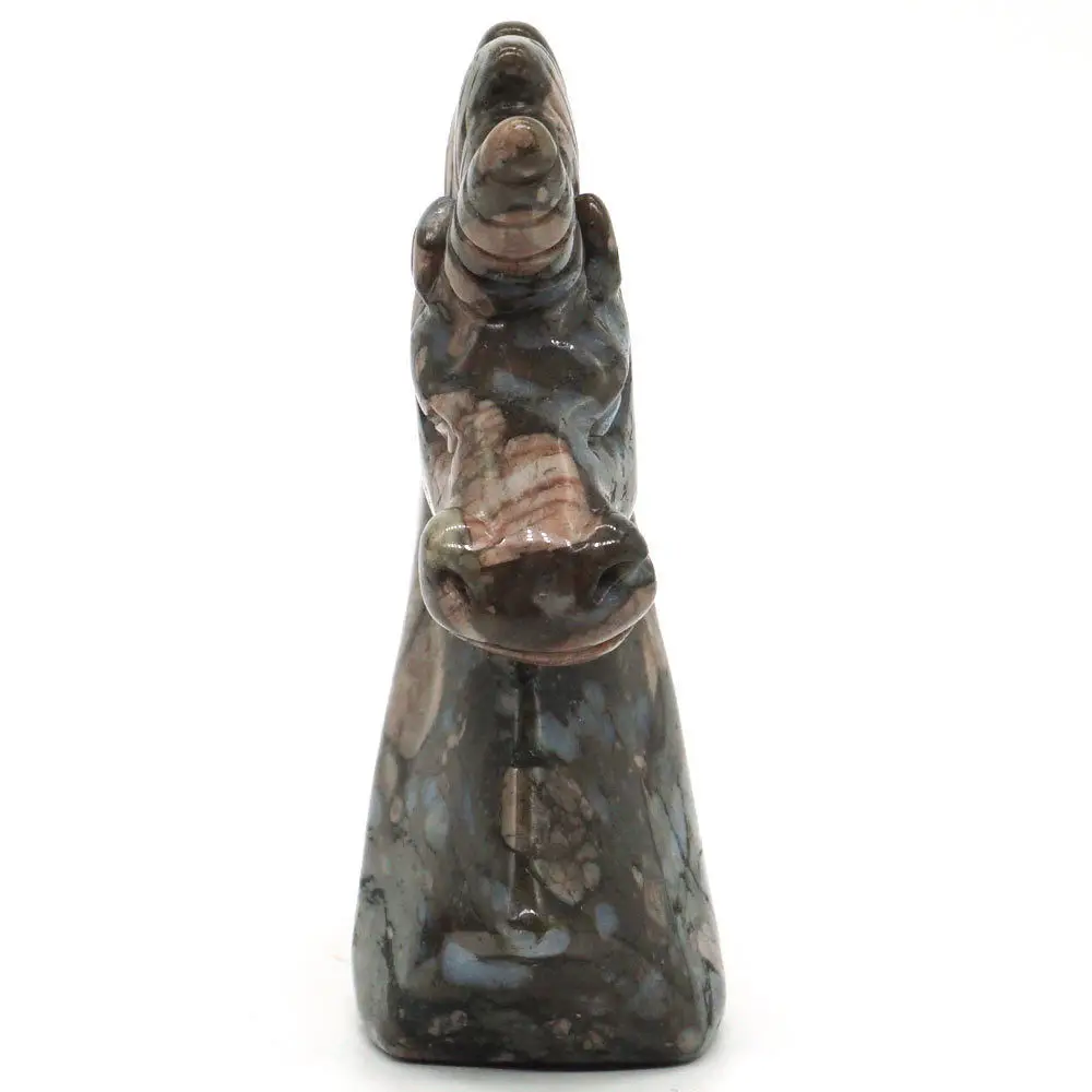 3" Texas Llanite Blue Opal Carved Unicorn HeadReiki Healing Statue Home Decor
