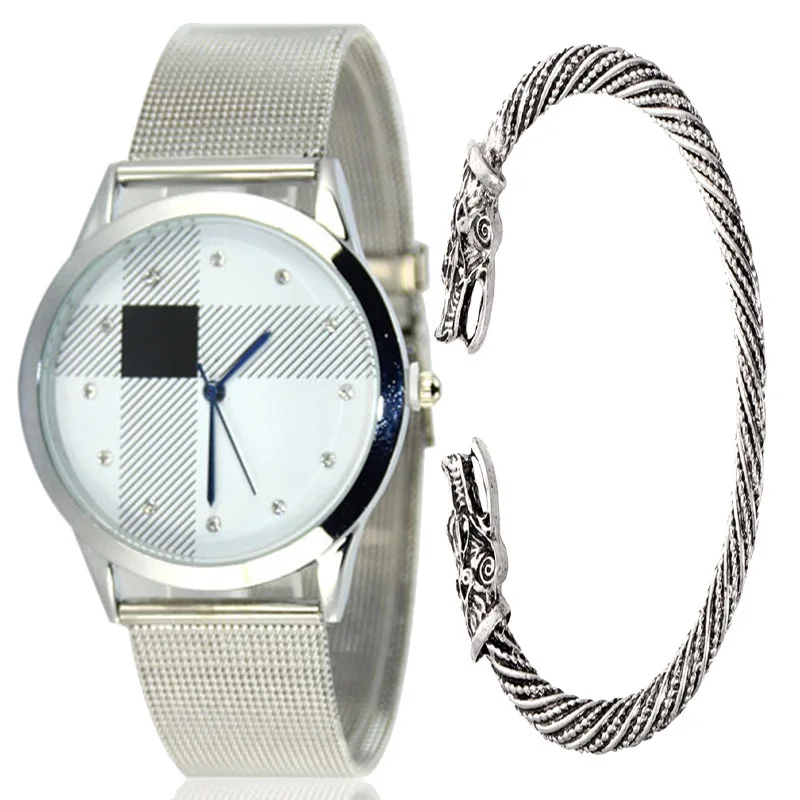 Ms + bracelet watches mesh belt table fashion alloy steel with grid scale design watches Wristwatch