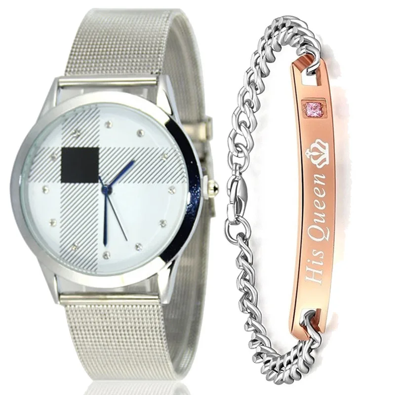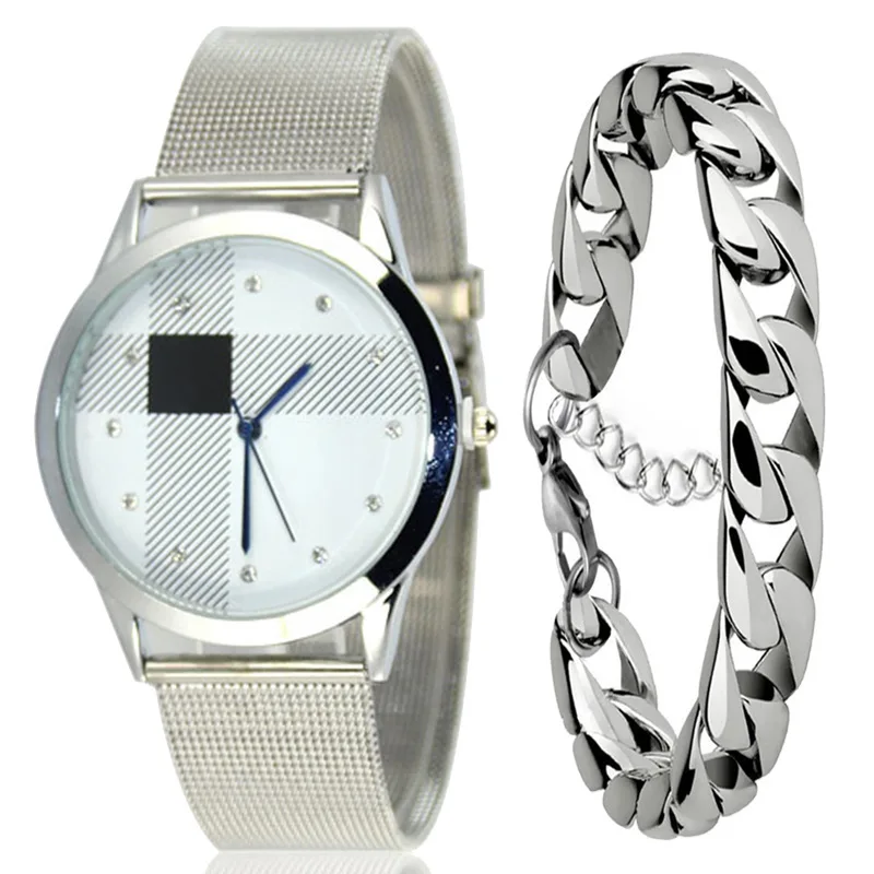 Review Ms + bracelet watches mesh belt table fashion alloy steel with grid scale design watches Wristwatch