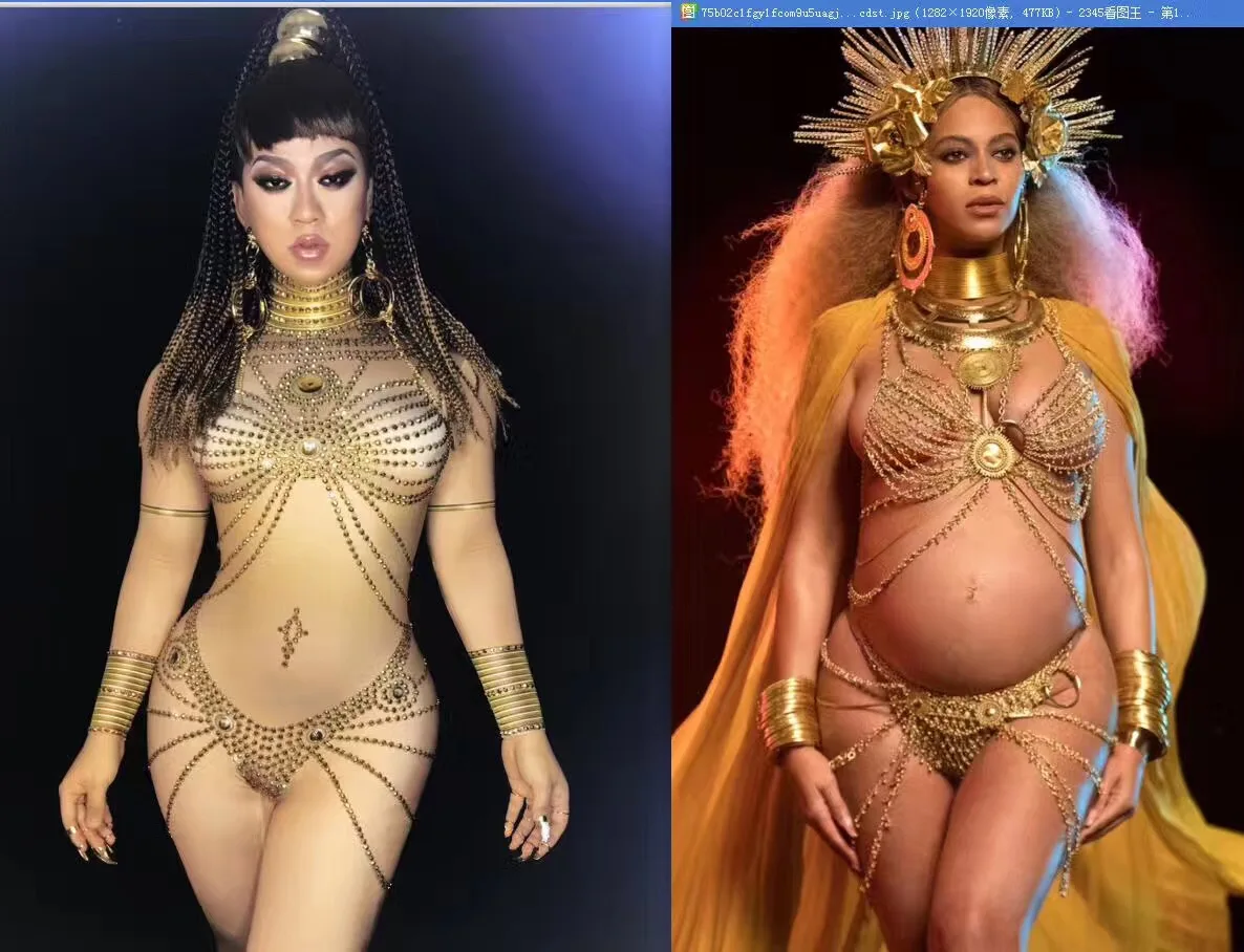 Review new Fashion Stage Jumpsuits Gold Stones Outfit Women's Rompers Nightclub Wear Birthday Celebrate Pa