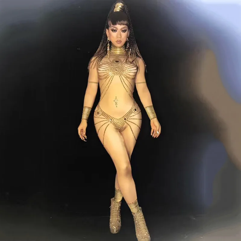 REVIEW TOP SELLER new Fashion Stage Jumpsuits Gold Stones Outfit Women's Rompers Nightclub Wear Birthday Celebrate Pa
