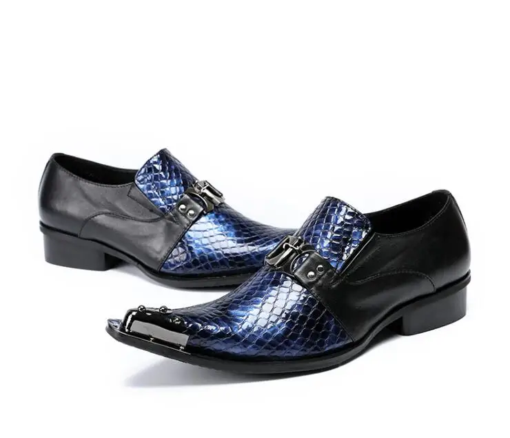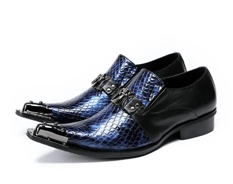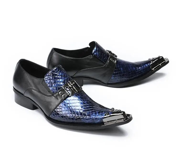 New Imitate Genuine Leather Men Oxford Shoes Slip-on Pointed iron toes metal buckle Stone Pattern s
