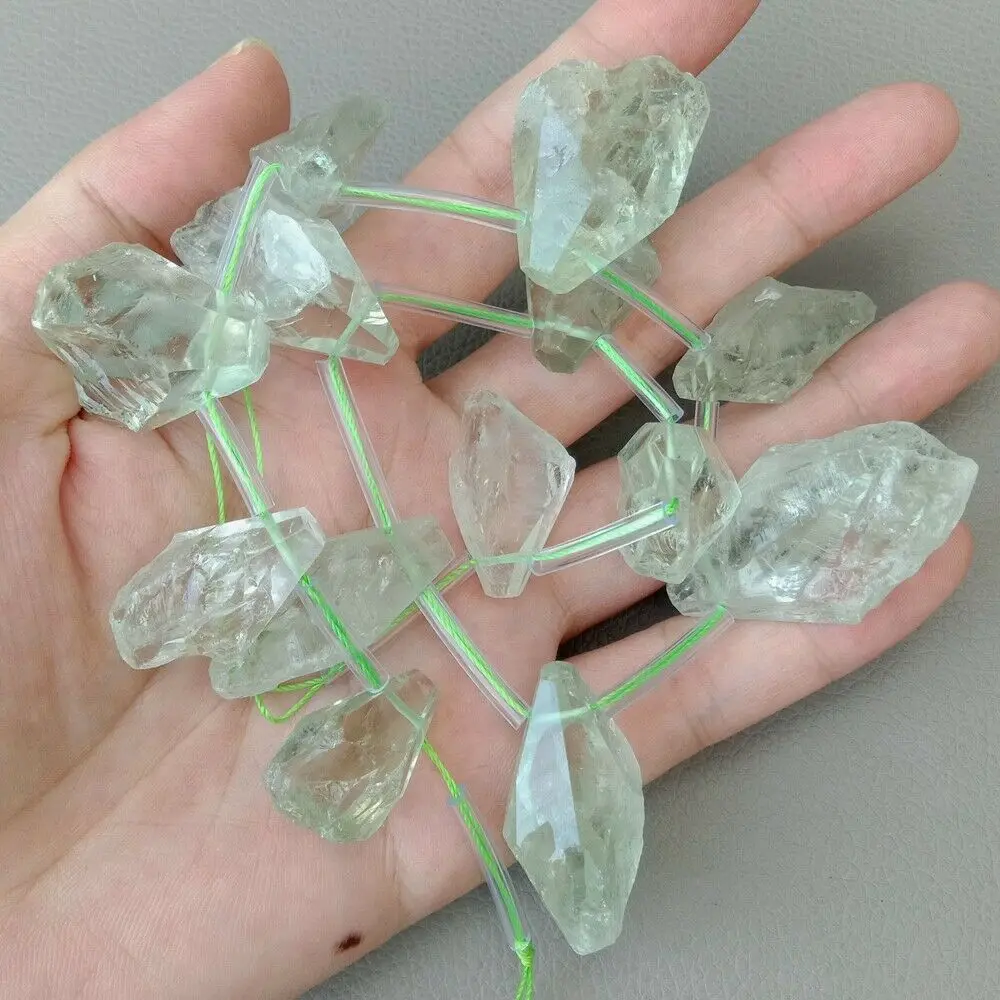 REVIEW TOP SELLER SE11468 Green A1methyst Prasiolite Freeform Nuggets Raw green Crystal strand 14"