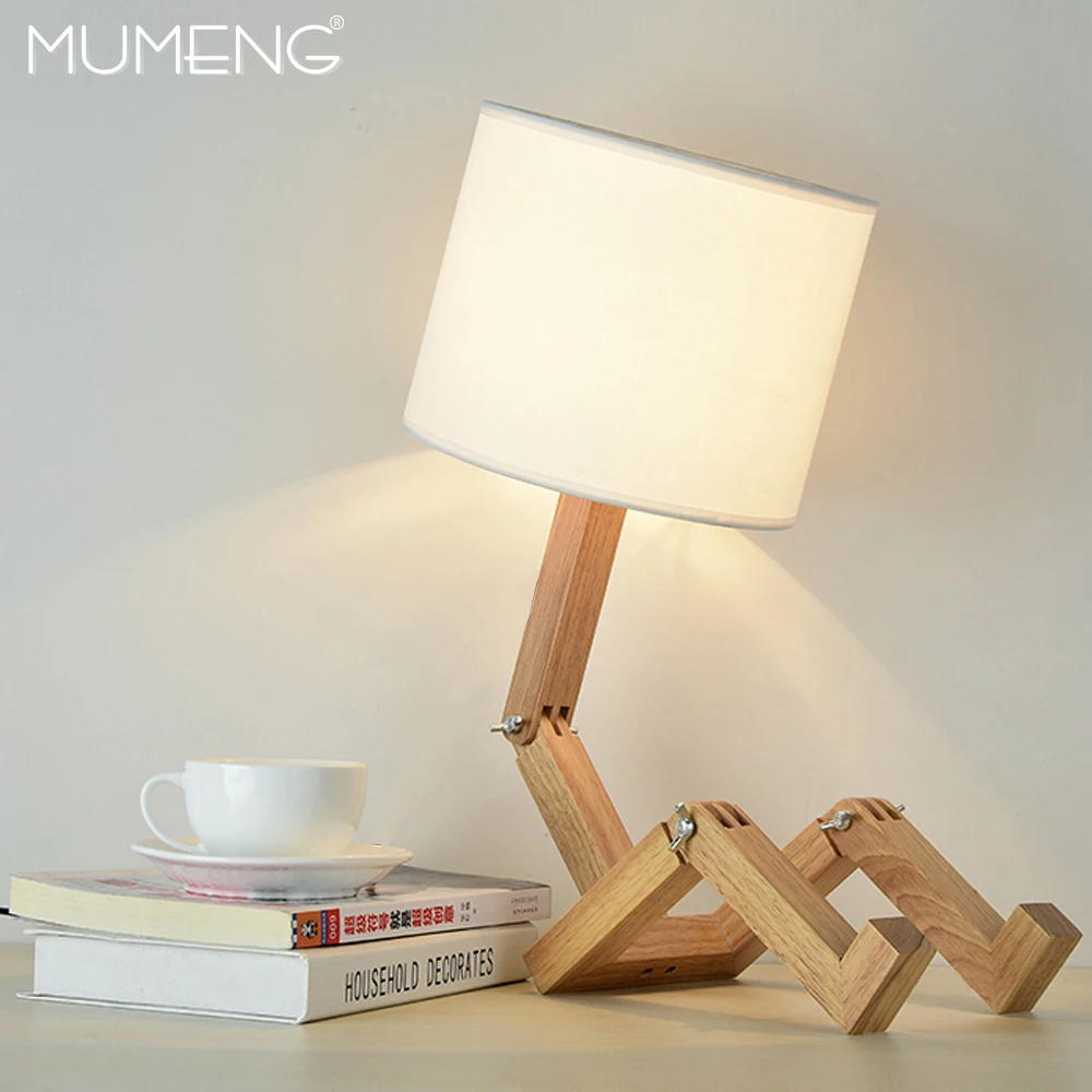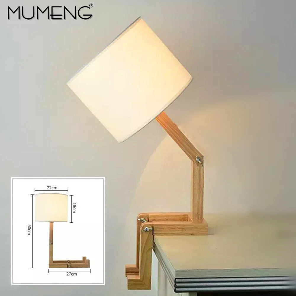 MUMENG Table Lamp 220V E27 Robot Modern Wooden Creative Shaped Flexible Adjustable Folding Bedside