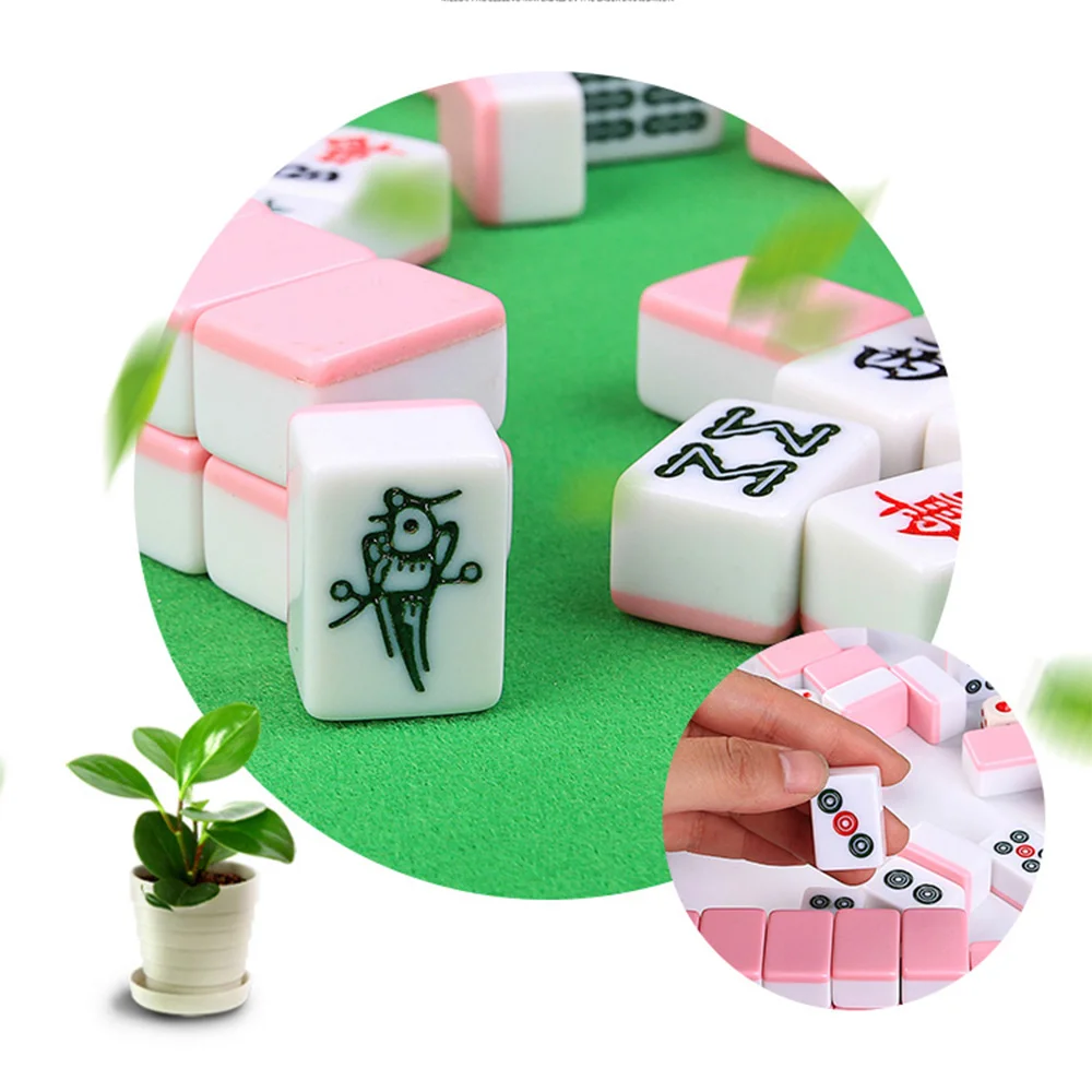 Wood Toys Mini Mahjong Portable Folding Wooden Boxes Majiang Set Table Game Mah-Jong Travel Travell